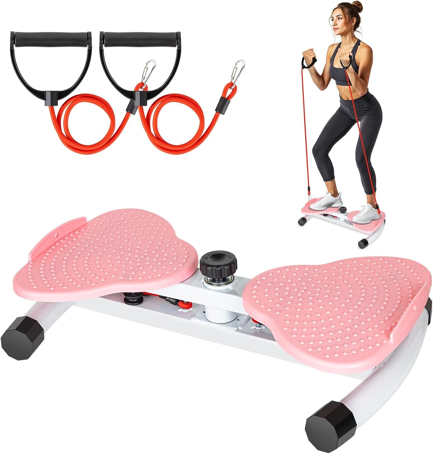 Introducing our 2-in-1 Waist Twister Machine, complete with 3 resistance bands for a versatile workout experience. Built with durable materials capable of supporting up to 300kg, this Twisting Exercise Board offers two distinct workout modes to target different muscle groups. Use it without the bands to enhance balance and perform localized waist twists, or attach the resistance bands for a full-body workout engaging your legs, abdomen, and more.