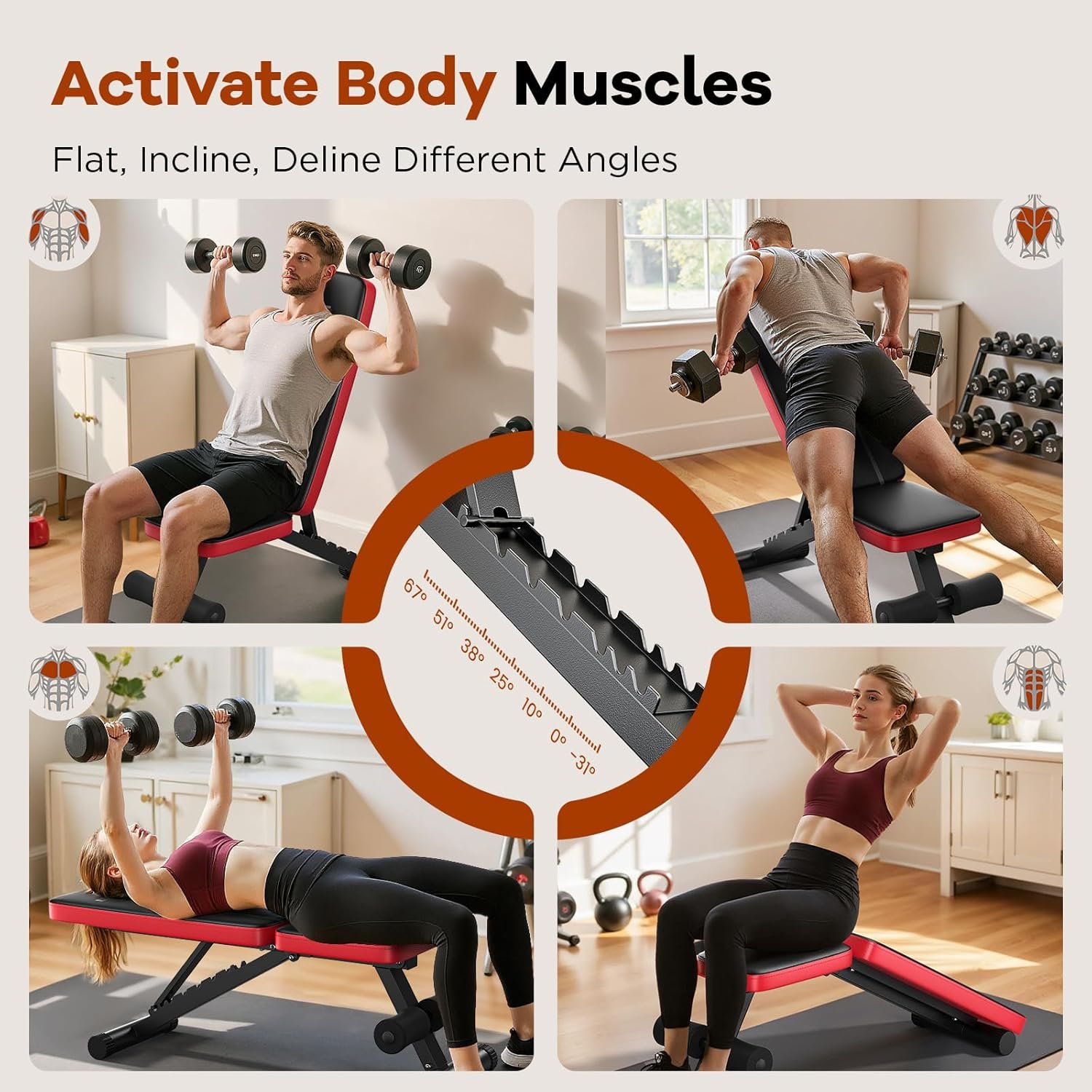 8-Angles Adjustable Bench: NICEPEOPLE adjustable bench is set with 8 backrest sets to meet your various needs, including incline, decline, and flat bench press; The groove design allows you to quickly switch different angles; Fully work every muscle