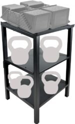 3-tier design separates 5-200lb dumbbells, kettlebells & weight plates for organized storage
