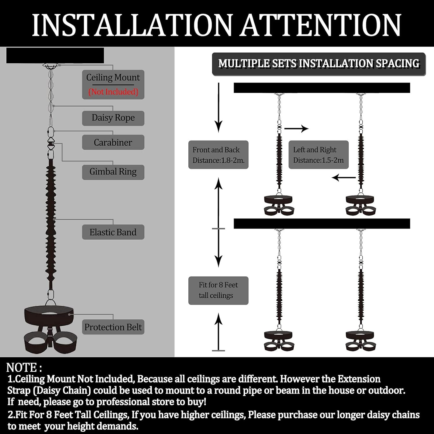 PACKAGE INCLUDED:1* Bungee Cord,2* daisy chains(one pair),3* Carabiners(2 already installed, and another one),1* Harness (adjustable padded harness around waist and thigh, provide maximum comfort for exercisers),1* Rotational Device (Can be rotated 360°),1* Guide Book. Home gym fitness equipment