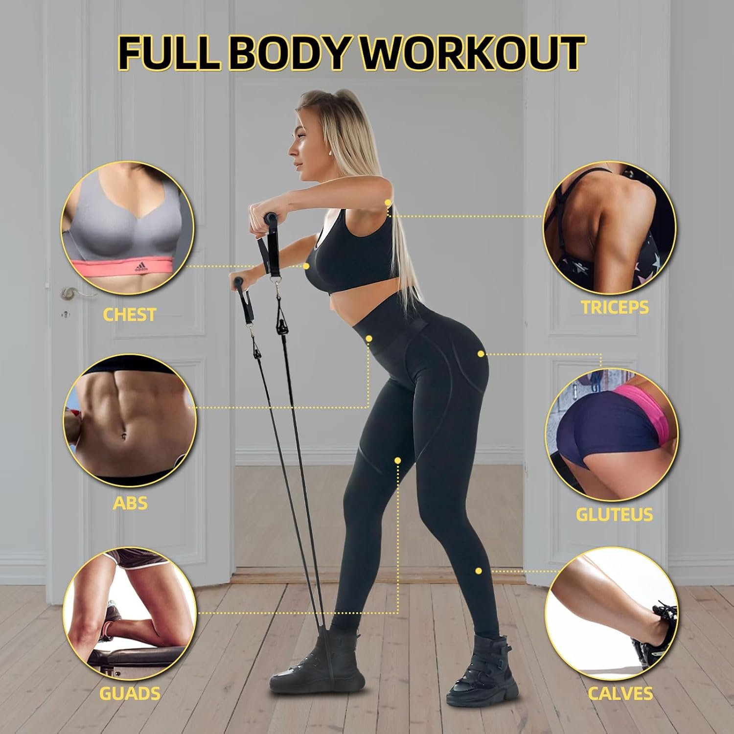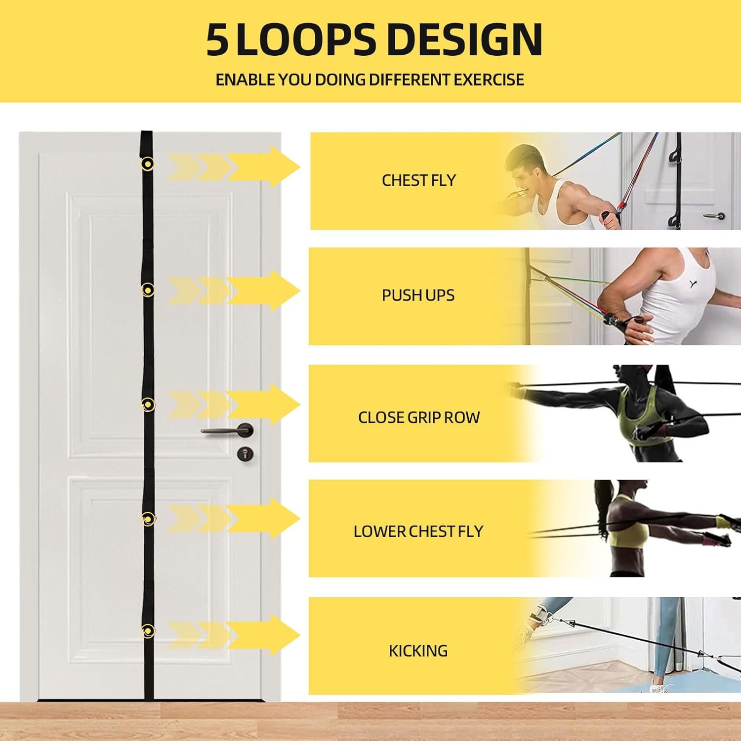 【Full Body Workout & Multipurpose】: Door anchor strap has 5 anchor points and D-rings, and resistance band set contains handles and ankle straps to help with full body workouts, including arms, back, chest, buttocks, legs, etc. They are great with any workout like Yoga, Pilates, Fitness, stretching, training, weights programs