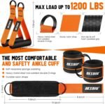SUPER STRONG LOAD-BEARING, HEAVY ATTACHMENT: Heavy duty exercise handles made of industrial strength ABS Core and covered with Soft Rubber material, sturdy nylon strap, and double steel D-rings, it is durable, comfortable, and anti-slip, sweat-proof. Max Load up to 1200 LBS. Ankle Straps have soft neoprene padding, and double D ring, making them the most comfortable and safety ankle cuff on the market.You can get a better experience and security during exercise