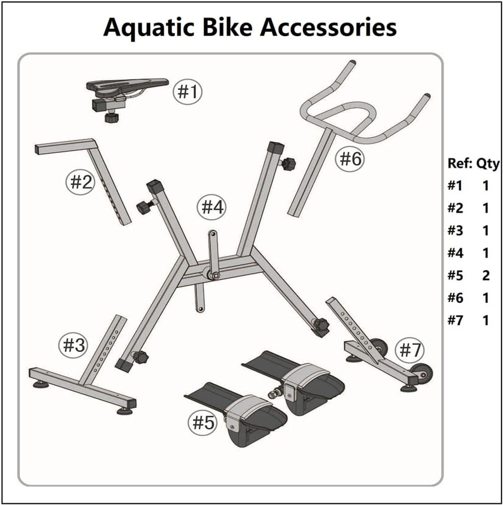Aquabike Size 40.7‘’(L) X 23.62”(W) X 58.74”(H) Aquabike Frame 316L Stainless Steel Aquabike Seat Premium Pu Pad Aquabike Pedal: PE Pedal Loading Capacity <330 Pounds Suitable People Tall of 47.24”-76.77” Aquabike Weight 33Pounds Aquabike Package 35.4” x 35.4” x 7” Application deep of water 43.3”-59” Surface Treatment Electrolytic polishing
