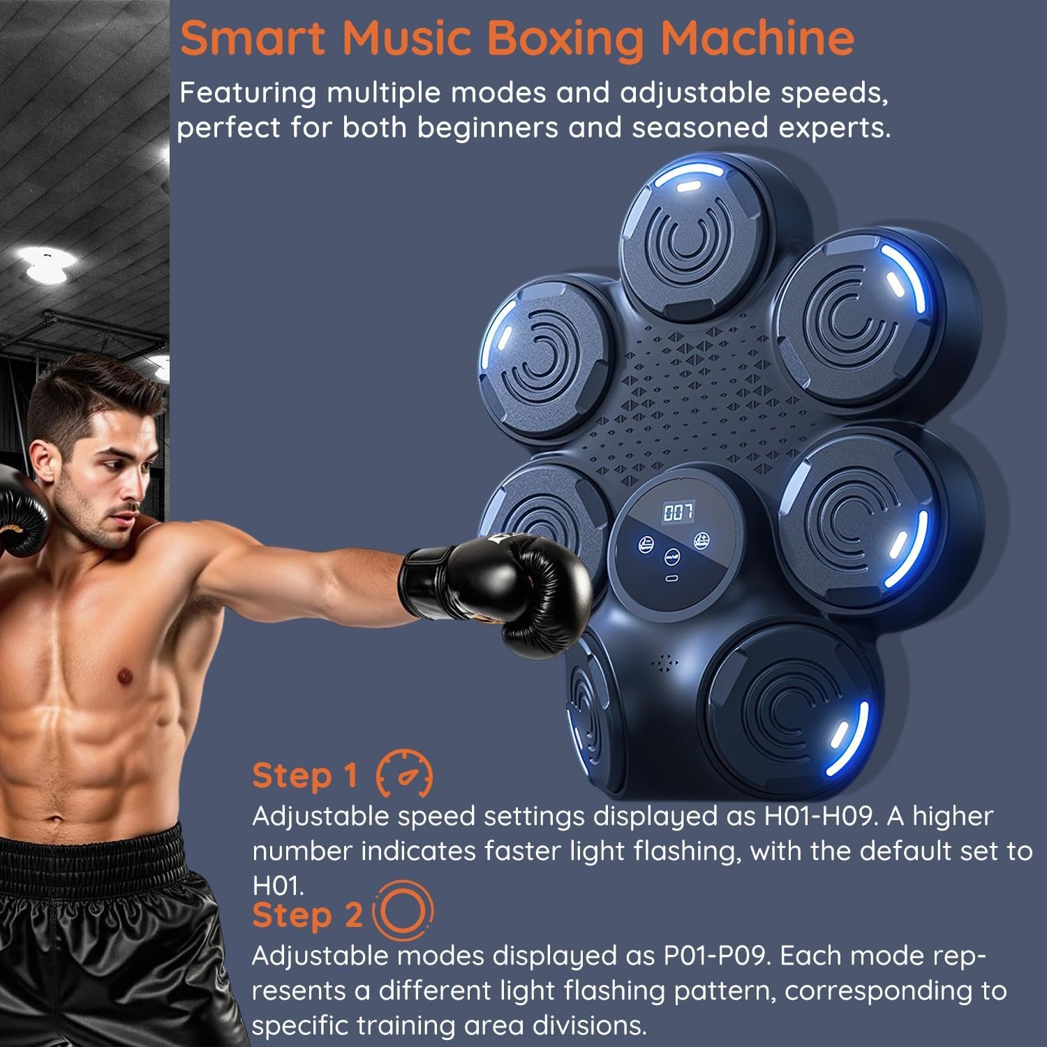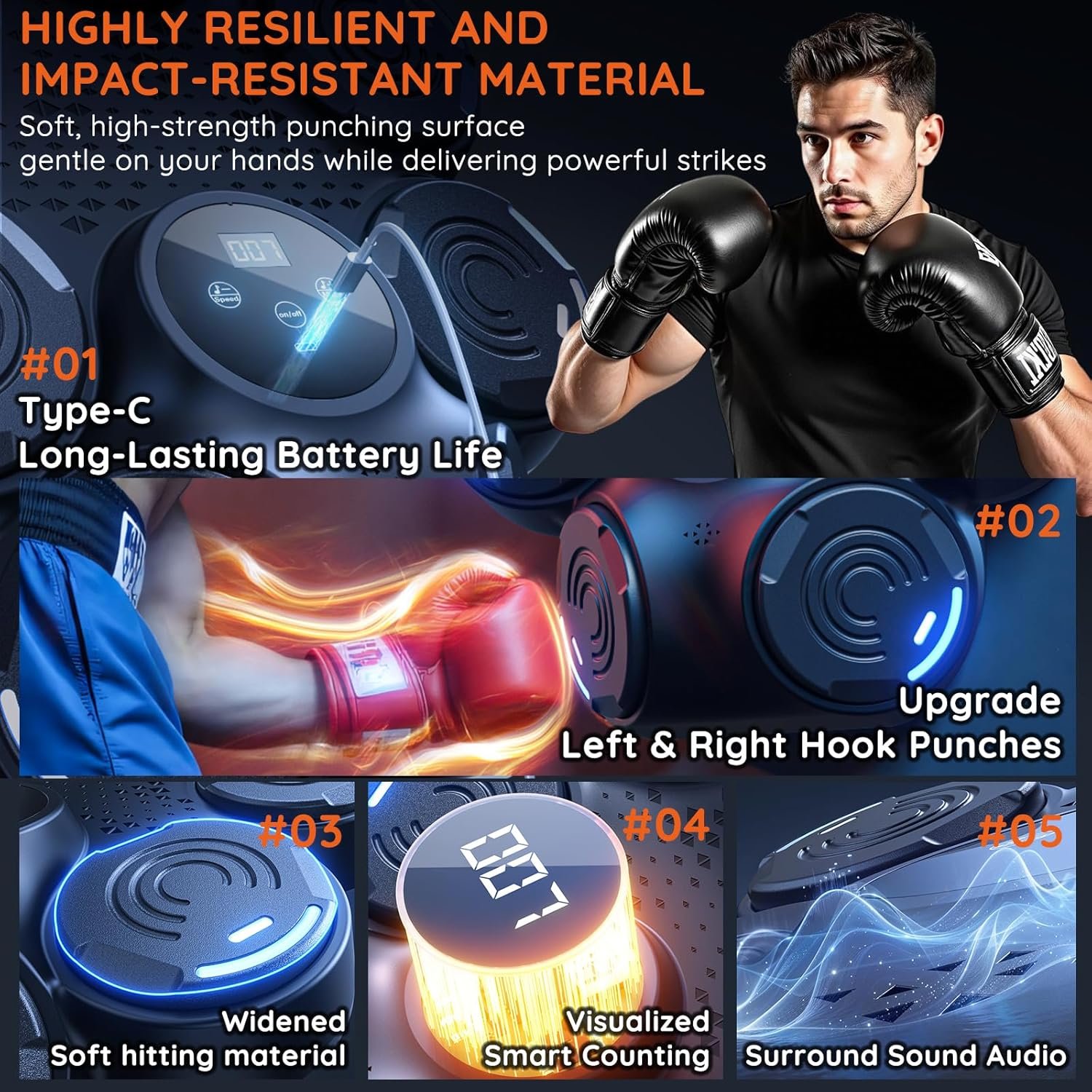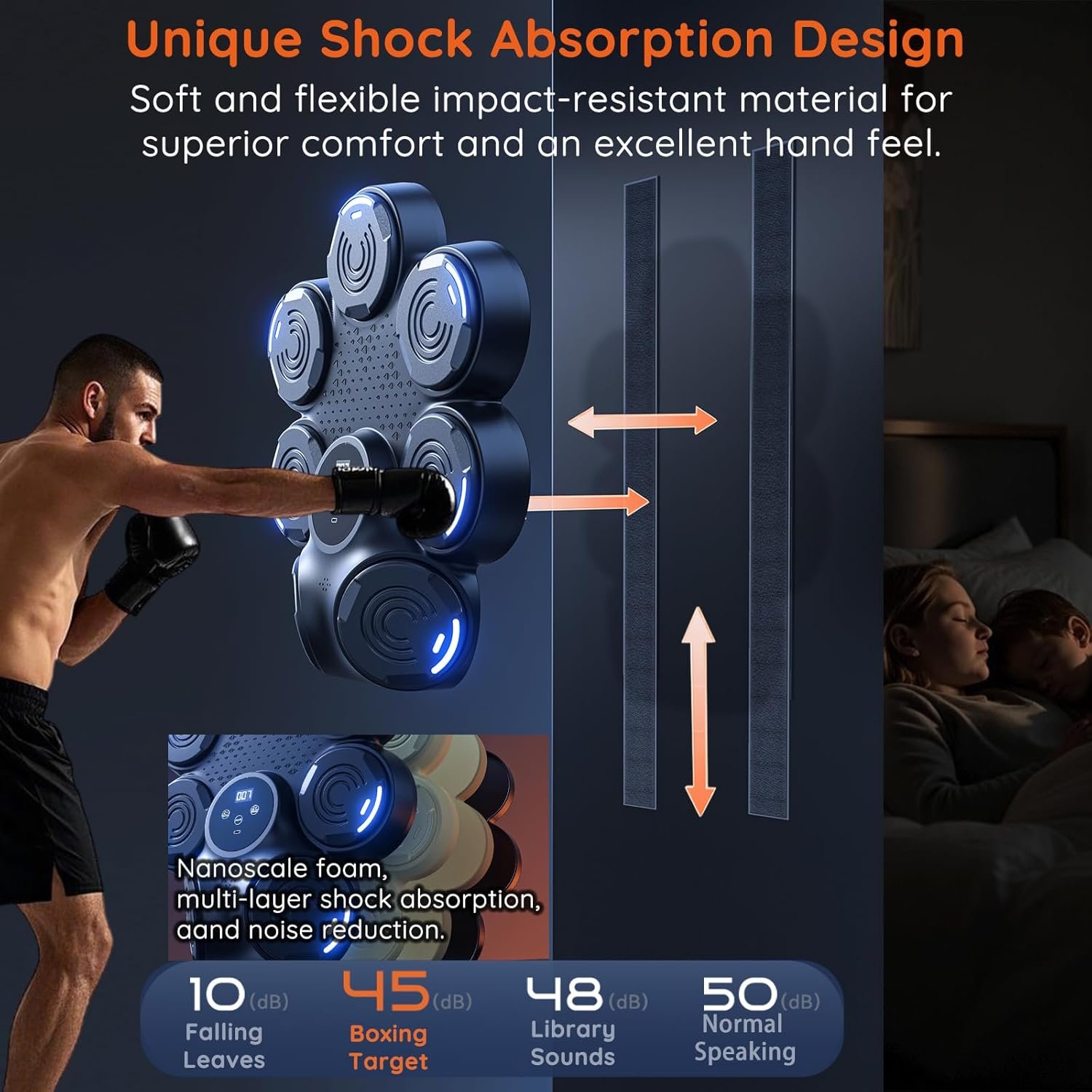 【High-Quality & Protective Materials】: Crafted with high-density foam and durable ABS material, this music boxing machine offers excellent shock absorption and rebound, protecting your hands during training. The smooth, stylish design is easy to clean, while the triple shock absorption system ensures durability for high-intensity workouts.