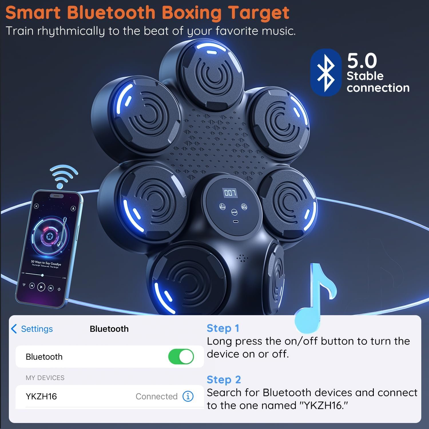 【LED Display and Bluetooth Connectivity】: The built-in LED display tracks your hits, recording every step of your progress and improvement. This smart music boxing machine supports Bluetooth connectivity, allowing you to play your favorite songs while training. With immersive surround sound and dynamic lighting, every workout becomes an engaging and energetic experience!