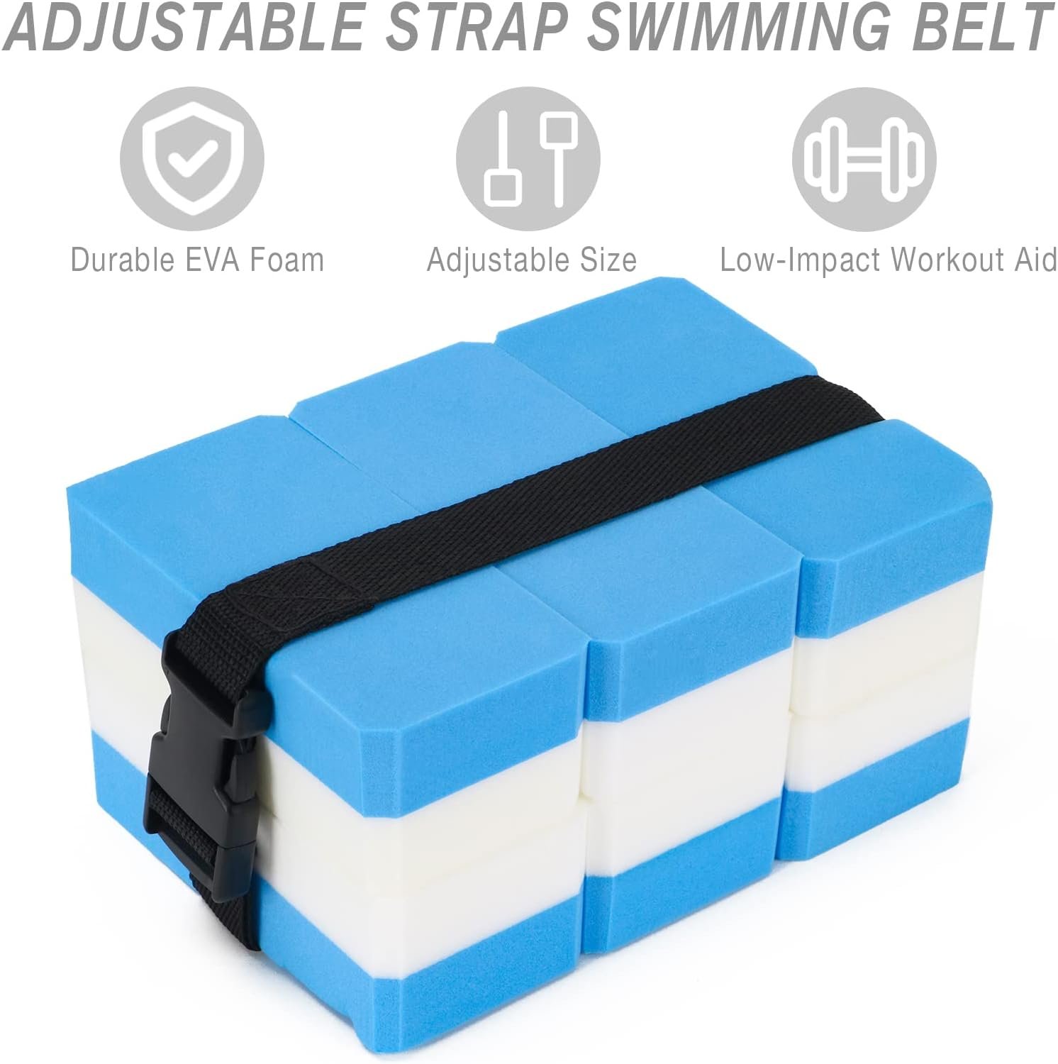 Aquatic Exercise Equipment: This combo set has all the essential tools you need for aquatic exercise. It includes 2 high-density EVA foam water weights, 1 swimming belt, 1 swimming pull buoy, 1 swimming kickboard.