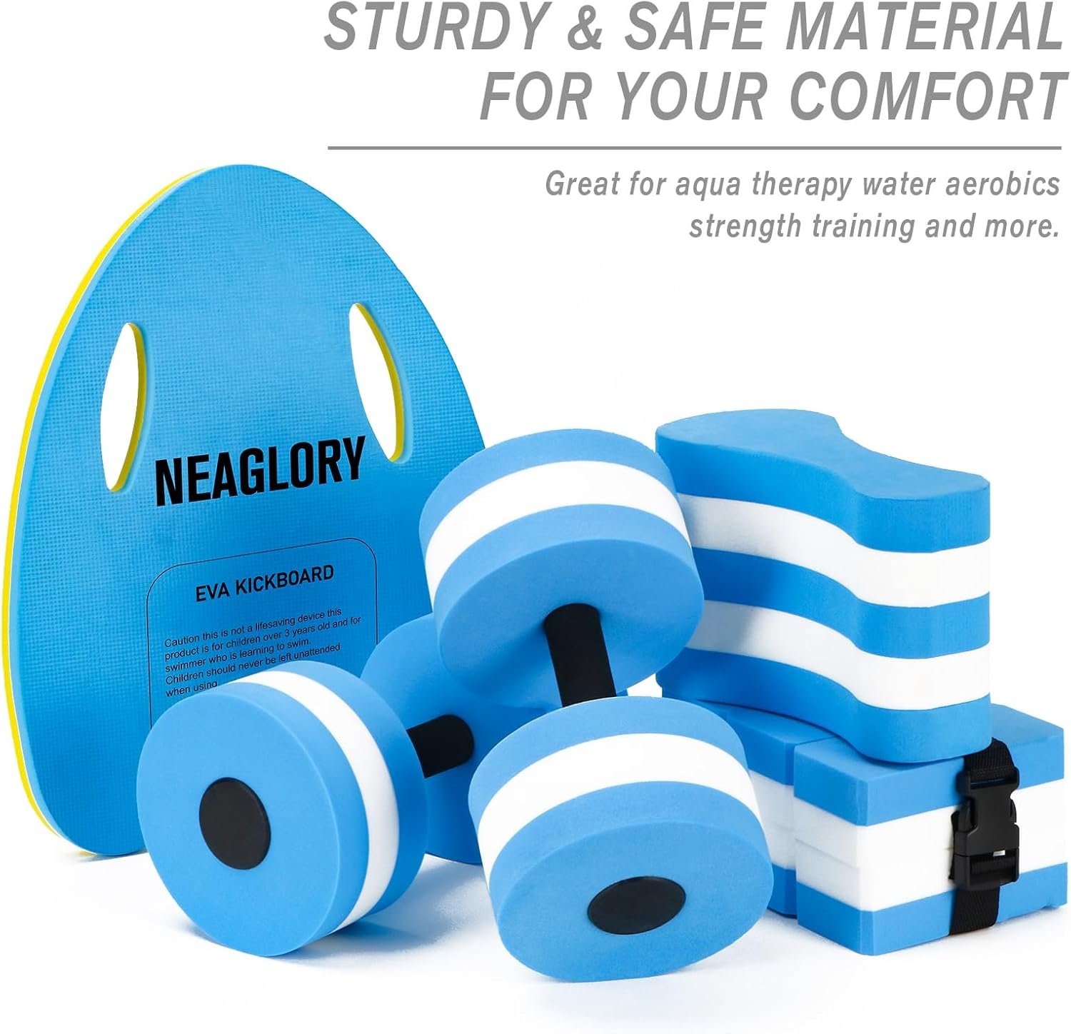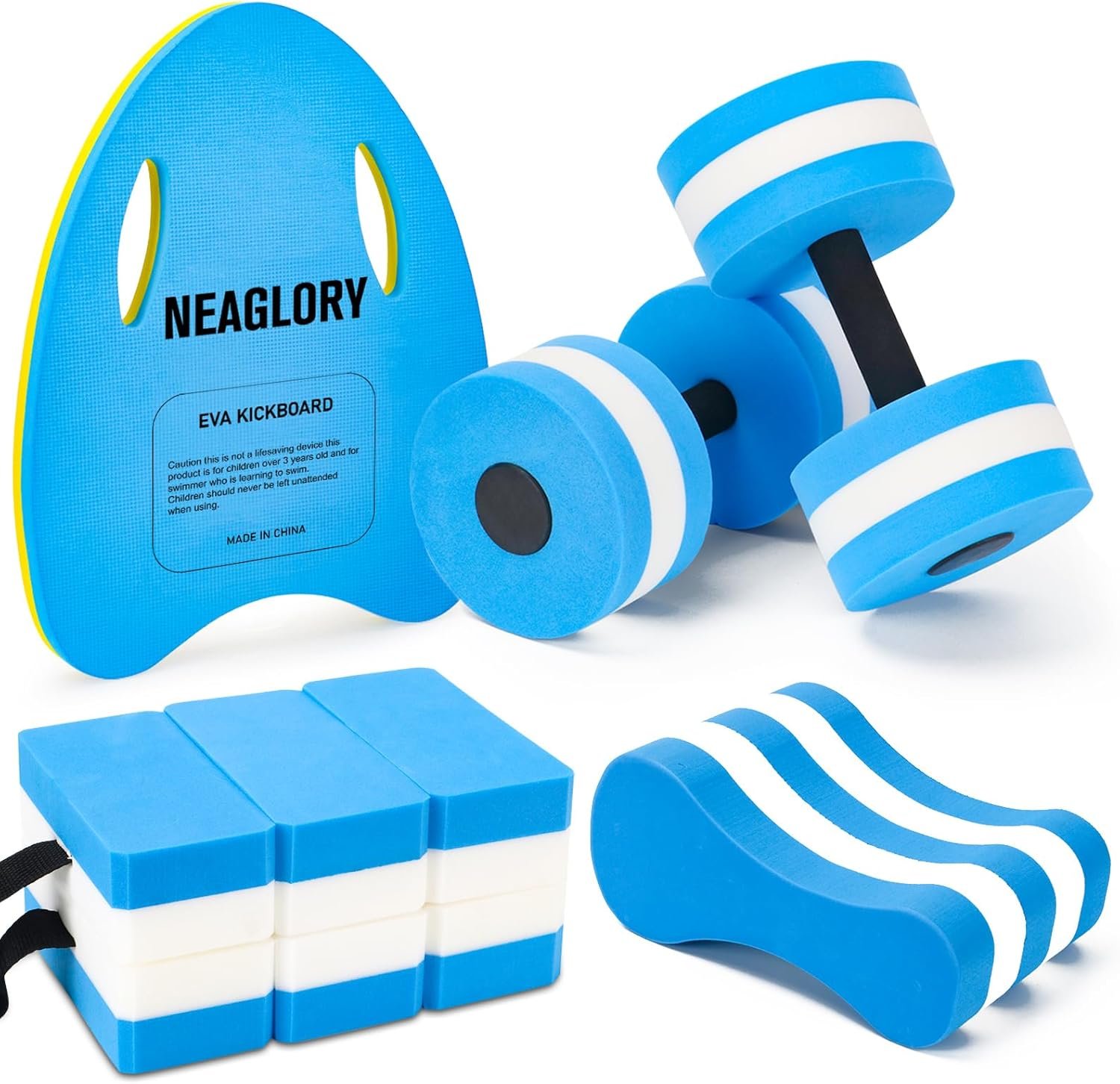 NEAGLORY 5 Pieces Water Aerobics Set, Aquatic Exercise Set Pool Fitness Equipment with Foam Dumbbell, Swim Kickboard, Pull Buoy, Aquatic Swim Belt for Water Workout