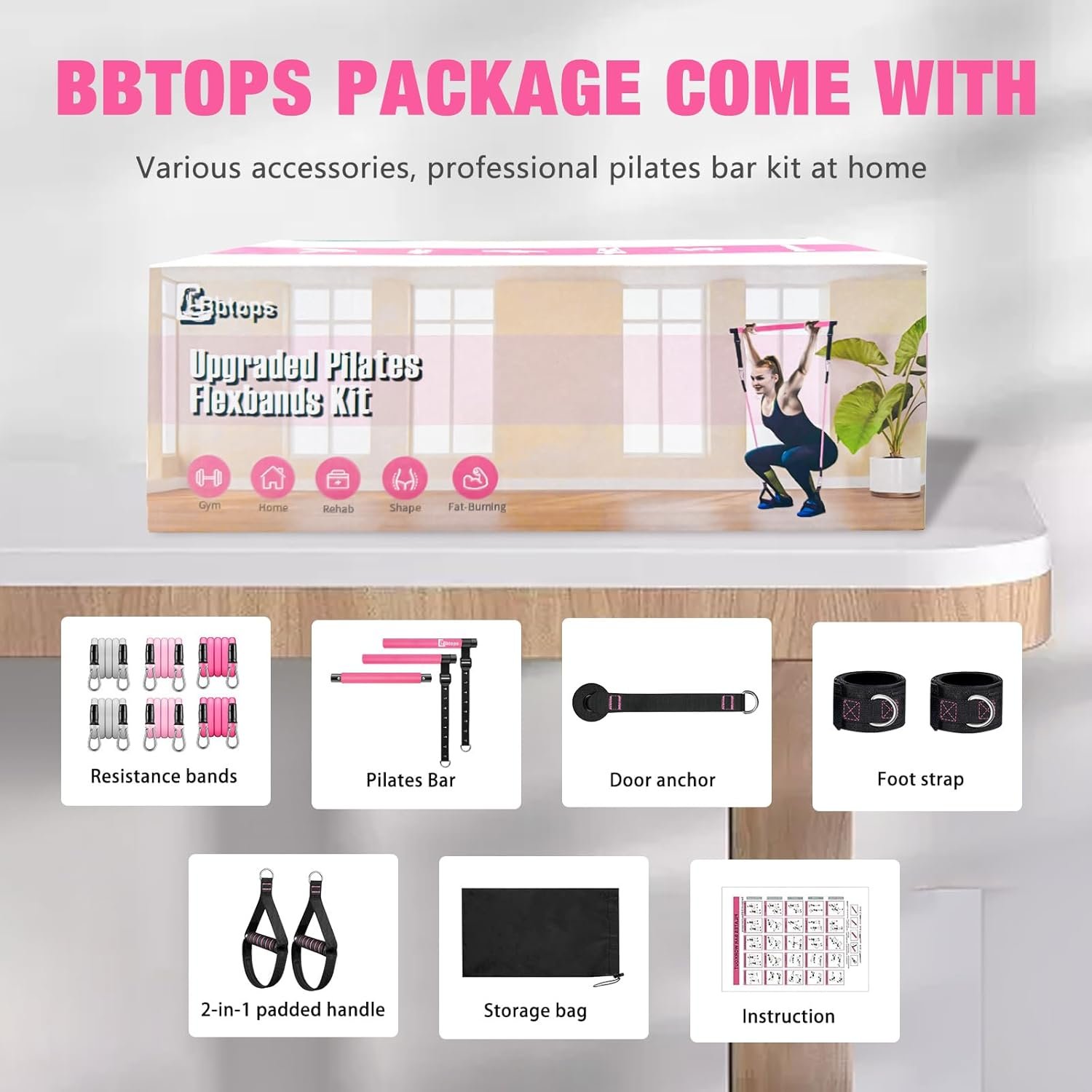 【Easy to Use】Upgraded Bbtops Pilates Flexbands Kit can be used for yoga, pilates, stretching, fitness and other training programs, exercising your arms, legs, buttocks, waist, neck and back. As long as you use it to do different movements, you can shape and maintain a perfect figure. Door anchor, handles, and ankle straps enrich your exercise methods,meet the needs of various exercises for you.