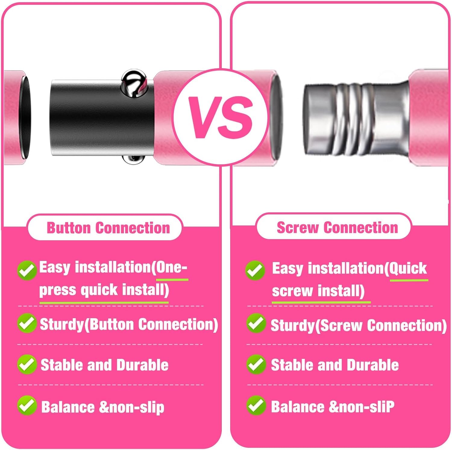【Upgraded Bbtops Pilates Bar】Pilates Bar Kit with Resistance Bands composed of three steel pipes,Six resistance bands equipped are made of natural latex, upgraded adjustment buckle and nylon rope with clear graduations. Just press the button easily, you can adjust the nylon rope to the desired length more quickly and accurately when training different movements. It can help you improve your strength, flexibility, and balance. which is strong, durable, and non-slip.