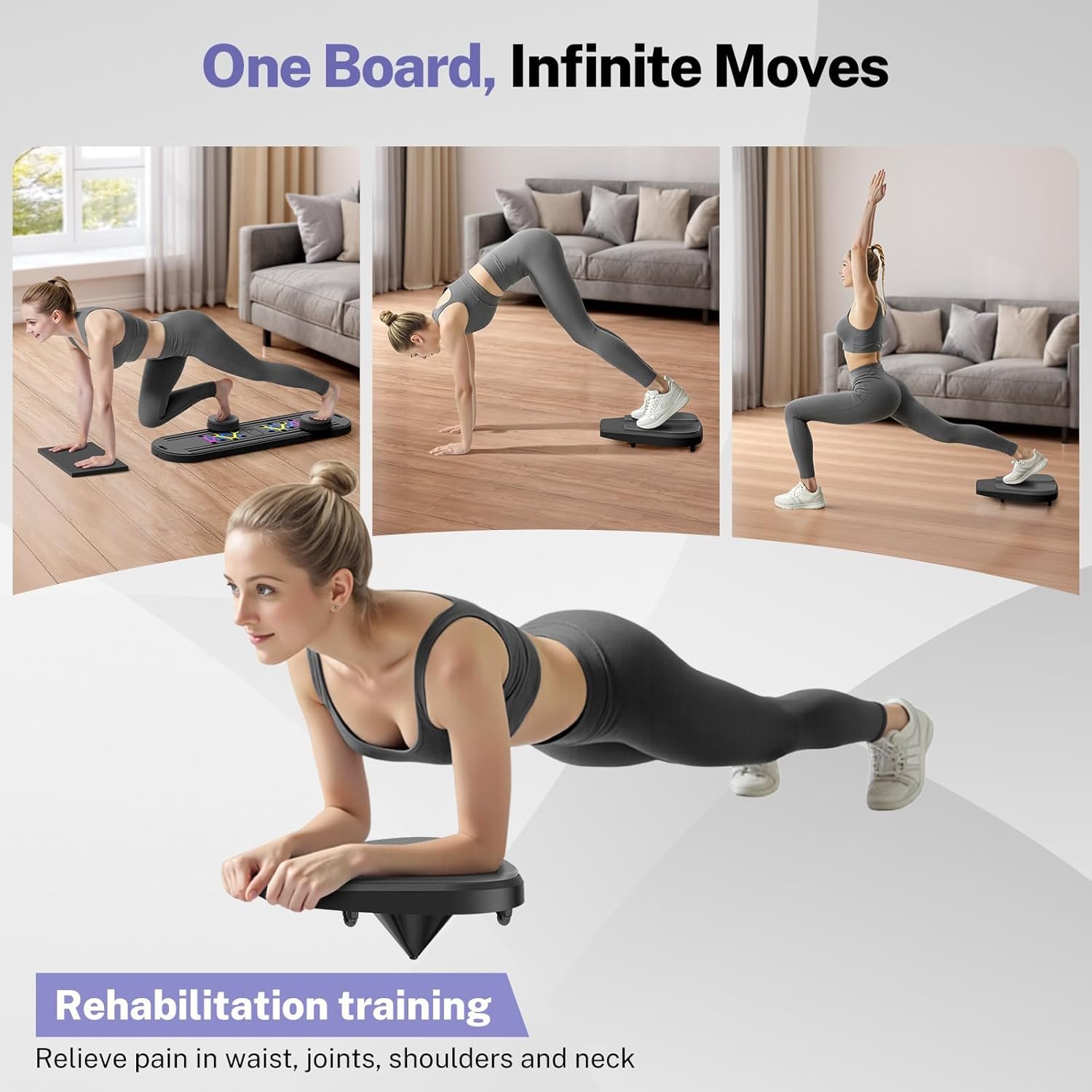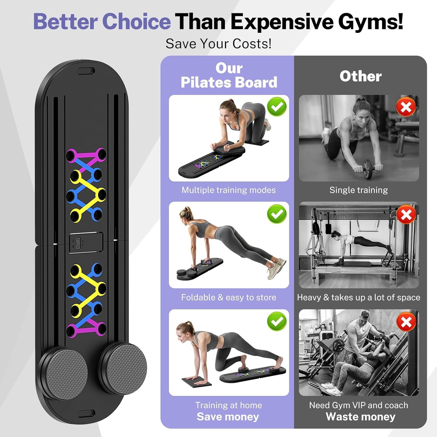 【Upgraded 7-in-1 Pilates Board】Compared with the traditional 5-in-1 pilates equipment, our pilates reformer set combines the functions of pilates board, resistance band, ab wheel, push-up handle, balance board and plank support, and can be combined into at least 7 forms, unlocking at least 15 exercise movements; helping you to effectively exercise your whole body muscles, achieve the effects of full body exercise, body shaping, fat loss, and body improvement.