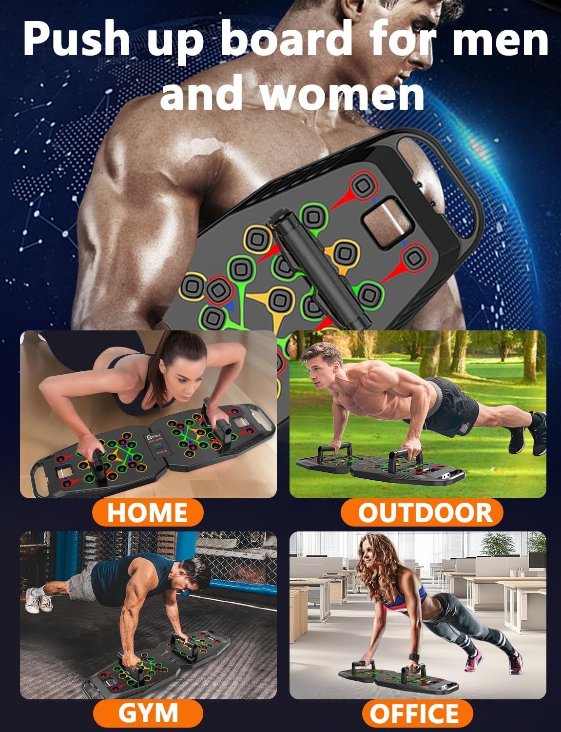 【Portable & Stable】Silicone non-slip pads increase the stability of the board, this home workout equipment maintains stability on any floor surface.the push up bar with a storage bag so you can fold the board and carry it anywhere