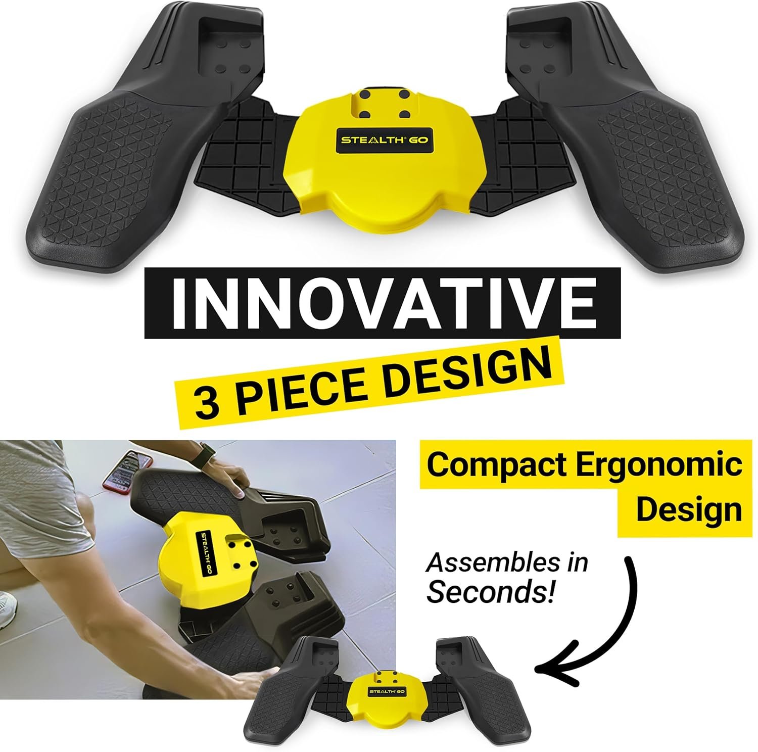 Stealth is the only Plank core trainer with 360 degree motion. The proprietary multi-directional dynamic design allows you to attack your core from every angle. Get a strong core and a healthy back in under 3 minutes a day!