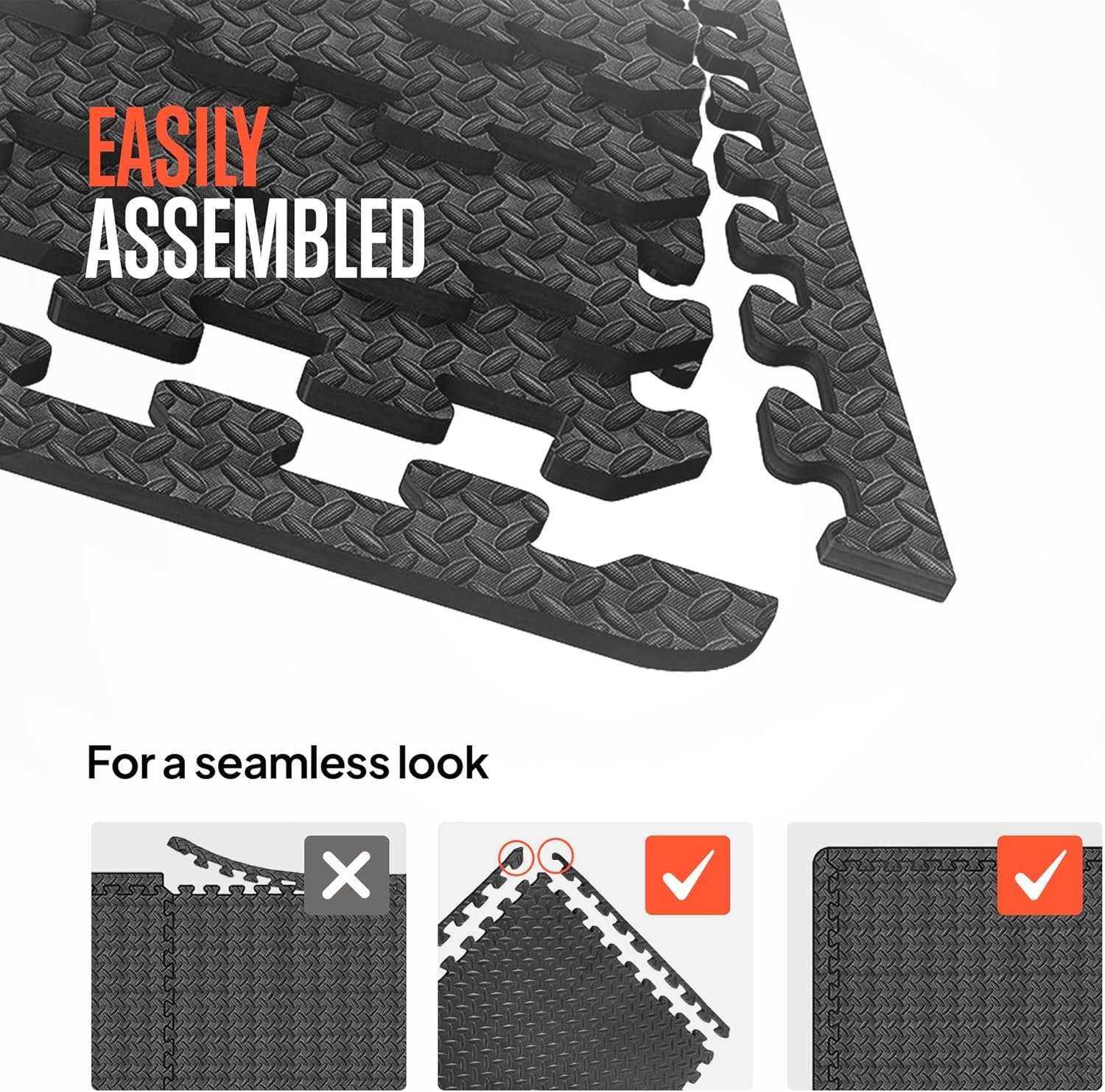 HIGH-QUALITY FOAM MATERIAL: Made with premium high-density EVA foam, these interlocking tiles provide excellent support and cushion to make your workout space functional and comfortable. The tiles offer optimal elasticity for anti-scratch protection. Ideal for long-term use