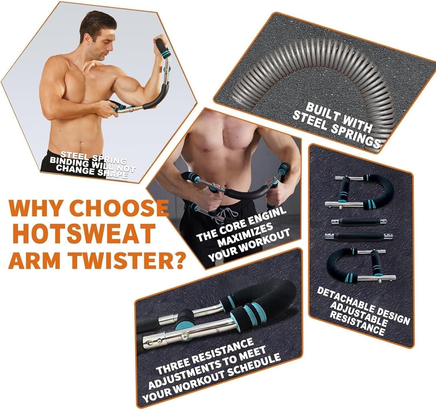 【Strength Enhancer at Home】The Twisting Arm exerciser is designed for effective upper body exercises, increasing training effectiveness by 40%, targeting the chest, shoulders, forearms and biceps, thighs.Exercise at home instead of the gym