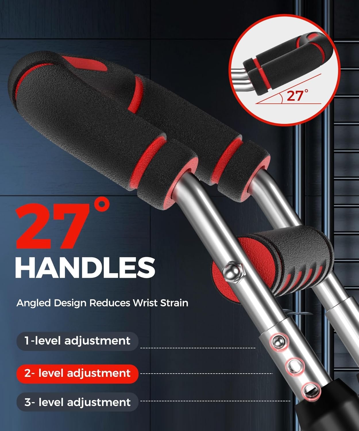 Ergonomic -27° Angle Handles: Scientifically angled grips reduce wrist strain and maximize force output. Wave-pattern foam absorbs sweat and locks your grip—no slipping, even during arm workout.