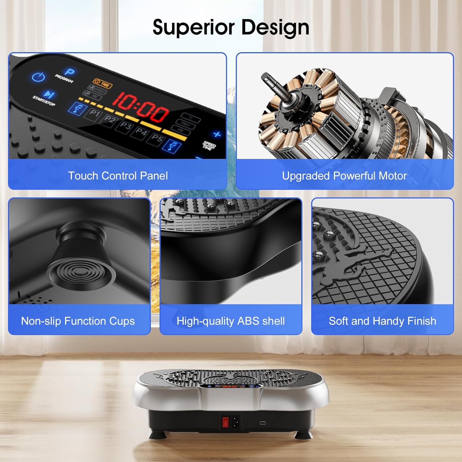 ✅【Why Choose Anyrap Vibration Plate?】:High Power & Ultra-quiet motor; Can be used as BT speaker; Bigger size than traditional ones; LED display shows time, speed; Magnet health massage function;Compact & easy to carry and store;Anti-slip coating designed;Enhanced upgraded ergonomic design shell makes it can load capacity up to 330 lbs and ensure more durability and stability; Easy to operate with controller while exercising; Up to 6.6Ft Long power cord.