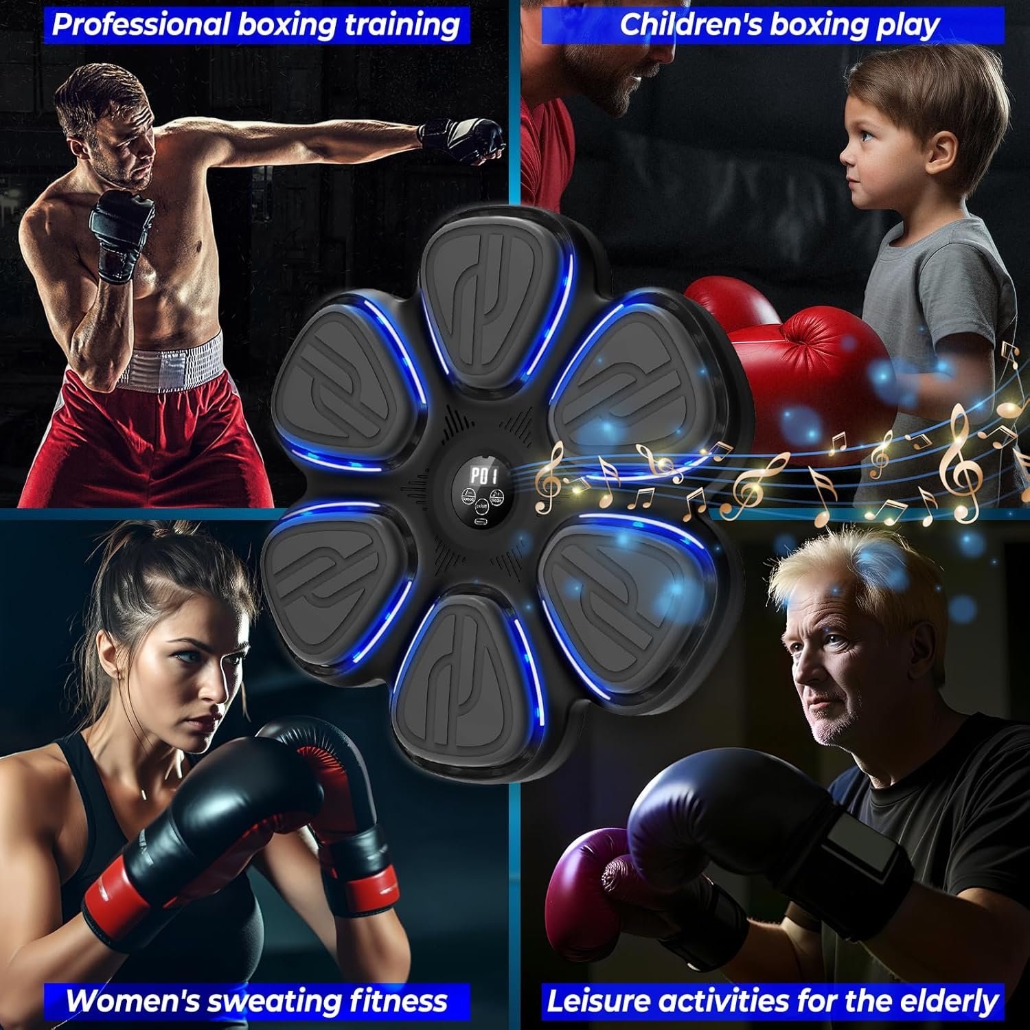 BLUETOOTH MUSIC BOXING – Connect your device via Bluetooth and play your favorite songs. This workout equipment tracks every punch, creating a motivating and energetic workout environment. Ideal for music punch lovers!