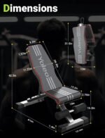 【Portable&Compact Design】This bench press bench measures 31.5″L x 12.6″W x 13″ H when folded, making it highly portable and comfortably small. It weighs about 23.1 pounds. When unfolded, it stands at 41″ L x 12.6″ W x 42.5″ H —small enough to fit into tight workout spaces