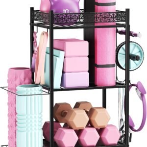 EFFECTIVE STORAGE DESIGN: This yoga mat storage rack has 3 layers and storage slots , which can effectively store different