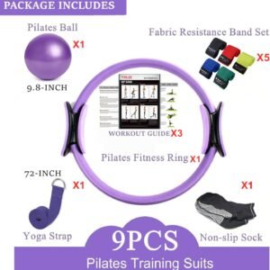 Pilates Ring Circle Set ★9 PICS PACKAGE INCLUDE★: 1 * 12-inch Fitness Pilates Ring/1 * 9.8-inch Pilates Ball/ 1 *72-inch